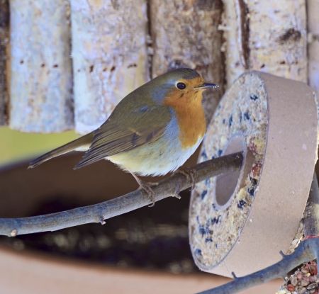 Rotkehlechen am Futterhaus...